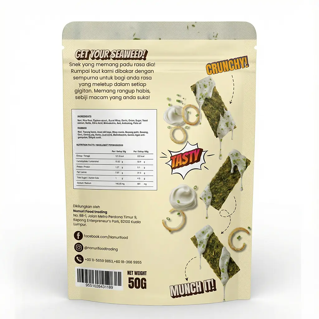 Nanuri Nori Chips: Soury Onion – Zesty Sour Cream Seaweed Snack (50g)